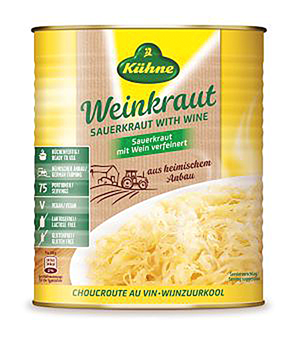 Storkok Produkter Kuhne Surkål Vitt Vin art: 224380 Klassisk Sauerkraut på riktigt vis, här i storköksförpackning. Bara värm och servera eller smaksätt enligt dina önskemål. Ingredienser Vitkål, vitt vin (2,1%), salt. Allergener Näringsinnehåll (per 100g) Energi 141.0kJ Energi 34.0kcal Fett 0.3g - Varav mättat fett 0.1g Kolhydrat 4.3g - Varav sockerarter 1.3g Protein 1.3g Salt 1.3g Fiber 2.6g På grund av produktförändringar kan angivet näringsvärde skilja sig från det näringsvärde som anges på produkten i butik. Om så är fallet är det näringsvärdet på förpackningen som är det riktiga för innehållet i just den produkten. Ladda ner PDF Mer från Kühne Sandwich Gurka Kühne Pepparrot riven Kühne Syltlök Kühne Cornichons Kühne Visa fler produkter